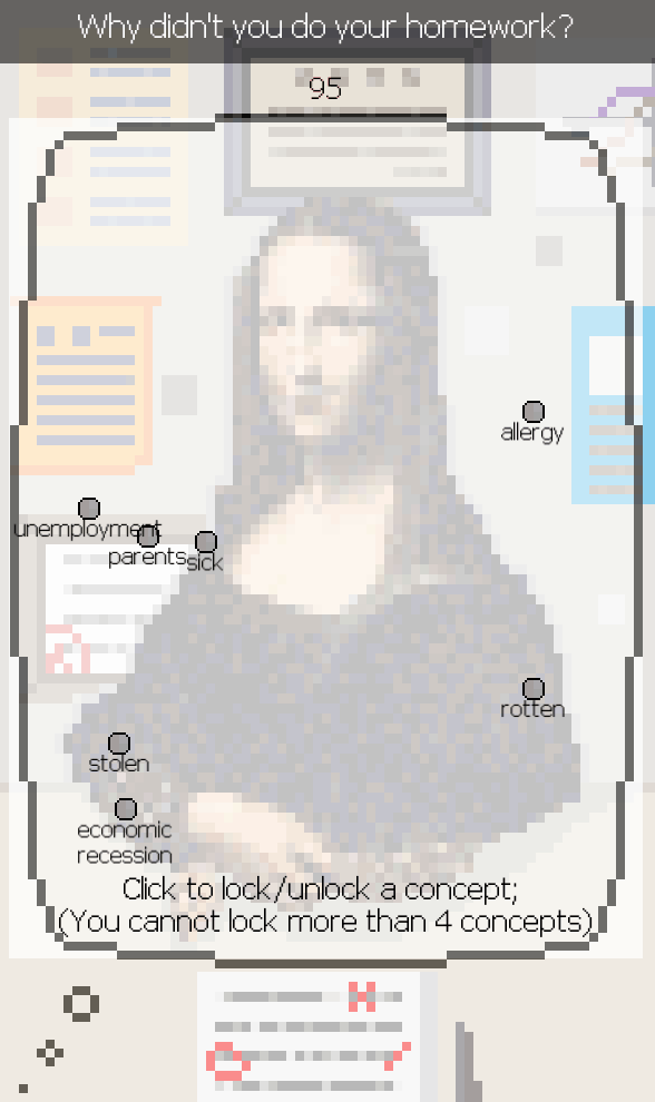 Connect concepts to make excuses for not doing homework. An experiment on narrative planning with Answer Set Programming. [itch]